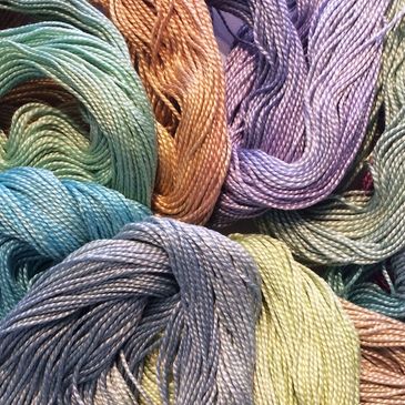 All of our products are hand painted by House of Textile Arts (Tentakulum) in Germany. They are wonderful combinations of colors which stitch in a painted look.